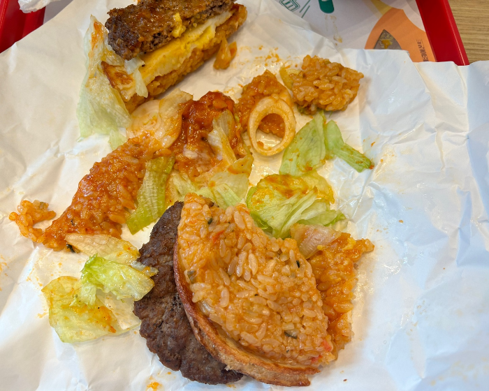 근데 너무 비빔밥스럽진 않고 고슬고슬한 비빔밥+짭짤한 고기패티 느낌이다.